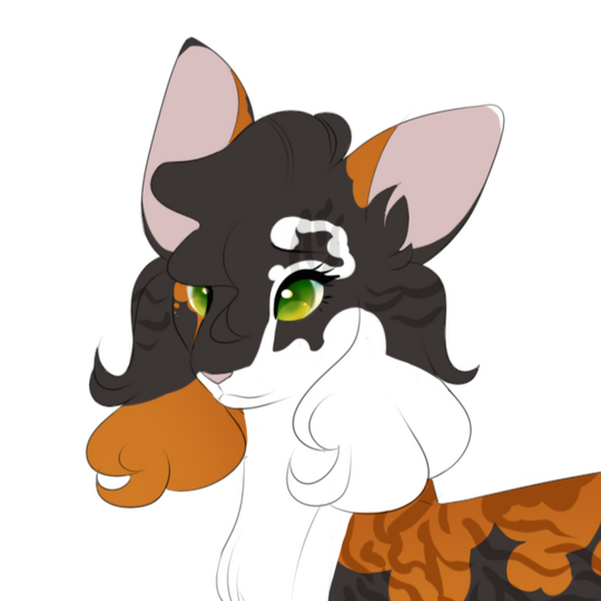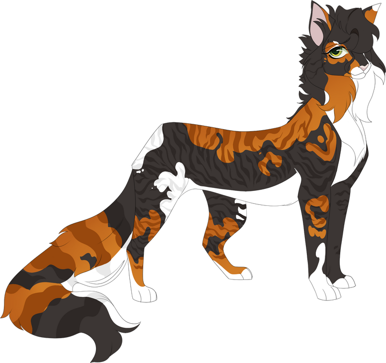 Simple Description: A black, ginger, and white tabbied tortoiseshell.Accessories: N/ALimited Traits: N/A
